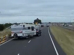 This fella was lucky to have this van stay on its wheels after a sudden swerve unsettled it.How you'd end up driving outside the fogline AND not see the roadworks barricade is anyone's guess,but luck was in his side this time.Cheers.