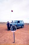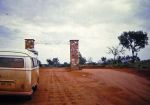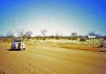 Crossing the border from the NT back into SA on the Stuart Highway on our honeymoon in 1967. It was "tradition" at that time to push the car across the border. I needed to take the pic of course.