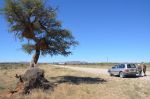 Tropic of Capricorn in Namibia, Africa. Between Windhoek and Sossusvlei. The birds nests are made by Sociable Weavers, they can get so heavy the branch can break off.