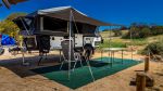 Markf as you can see with my forward fold camper trailer, I have two annexes. One is the full annexe, where I have to support the roof with poles and it can also have fully enclosed sides and floor.