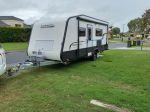 "Home is where the Den is parked, Designer Orchid Special 21' towed by Jeep Diesel Grand Cherokee Limited"