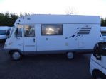 It's an A-class, 5.85 metres long. Easy to fit in a parking space, but still pretty wide (for Europe). Built on the fwd Fiat chassis with a 2.8 litre engine, 3400kg max weight. Air con in the dash. Tremendously roomy inside thanks to the double bed being above the cab (called a drop down bed). Full sized couch (which converts to a King single) and a third travelling (belted) seat. Great bathroom and kitchen in the back. I managed 9.9 litres per 100 km over 8800 km. Mostly max 90 kmph as back then country B roads in France were 80 kmph max (90 now). A great speed for those roads, sight seeing and economy. Lots of arduous and steep driving in the Alps too so I was surprised to get such good fuel economy. I wouldn't claim it's a beautiful vehicle, but you don't look at the mantlepiece while - er sleeping inside.