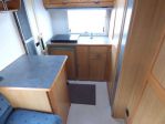 Wardrobe on the left. Very comfy drop down bed up in travelling position. Good windows all around. Ok for driving LHD in the UK.