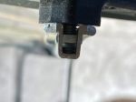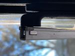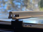 After driving on some very corrugated dirt roads near the Riversleigh Fossil Site, one of the struts on our largest window of our Golf Savannah Maxxi 390 came loose and the strut began swinging from the window. We found a nut on the seat below the strut. It appears that the U shaped strut is connected to the window frame via a bolt set in the frame with a captured nut in the U shaped strut. Somehow the shaking must have unscrewed the bolt and then the nut must have fallen out of the U shaped strut. We found that we could unscrew part of the window frame having the set-in bolt and re-screw the bolt into the nut after inserting the nut into the U shaped strut. The first two photos show the right hand side undamaged strut with the captured nut in the U shaped strut.