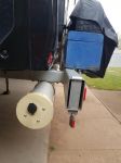My Jayco Westport has an open chassis crossmember at the front. I fitted home made caps for it and carry a couple of rarely used poles in it. My main pole & collapsible ladder carrier is the usual 100mm sewerage pipe across the rear bumper.