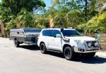 A good camper for Moreton Island. The Prado should handle the sand if you reduce the pressure in its tyres and the camper's tyres. Spent quite a few times there with our old Series 90 3.4L petrol, towing a 6.3m ally boat.