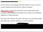 Details of a recent accident in Tasmania.It should probably be noted that it was not the car that "lost control" as the car was never in control of anything. The driver lost control of the car.Pity reporters can't speak properly English.(sic) Cheers