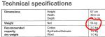 Our 2.5 kg washer goes 16kgs, when we got our second hand caravan it was just sitting wrapped in transport wrap, ban spanking new. I need to pull it out of the hole and fit it back in, did not weigh 50kgs, I would never of been able to lift it at that silly angle.