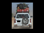 Thankyou for your concern about my safety, but I am well aware of the physics involved when there is a high centre of gravity. However, you no doubt would understand that 70kg on the well-built canopy roof of a 3600kg car would be of little concern? All other added weight is stored safely on or under the false-floor tray while there is 120 litres of water in tanks directly behind the cab and under the false floor that sits above the 6 slide-out toolboxes. There also are another 3x20 litre drums on their sides at the rear under the false floor if needed, but they are yet to be filled. Because the van has hot water supplied by the diesel heater, this poly tank is used only when the van is not with me, so that when I need hot water I simply pump water from the two tanks behind the cab up into the poly tank. Tanks, bladders or other containers on the tray no doubt suit some, but very hard to heat water there, and useless for showers without extra pumps etc. Keep it simple. You might be interested in these overloaded roofracks? The Pajero's load would be 150+kg while the I'd hate to think what was the load on the Patrol? Whatever it was, the Patrol seems to have bucked it off? They certainly would make the cars stupidly top-heavy, but my setup is of little concern. Cheers