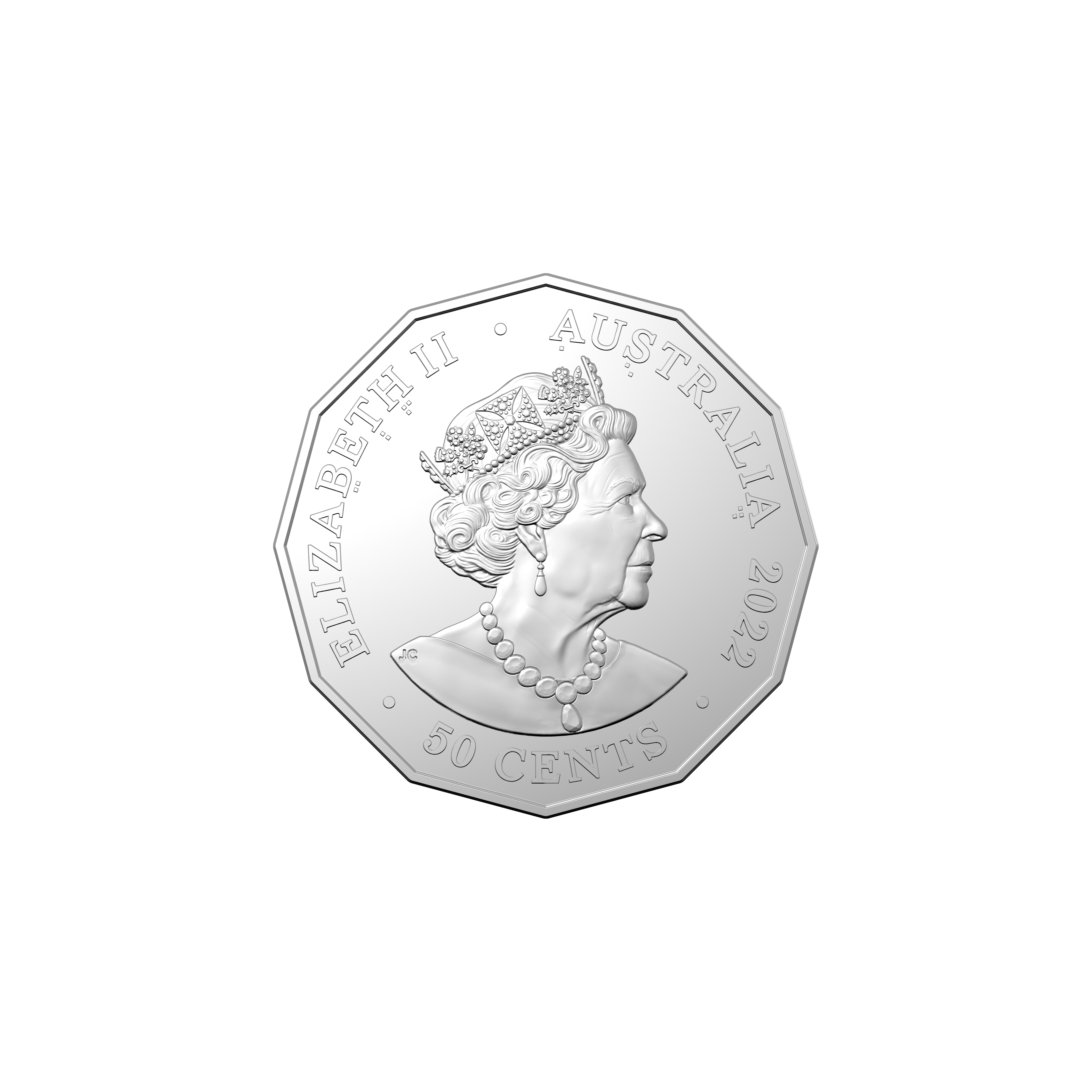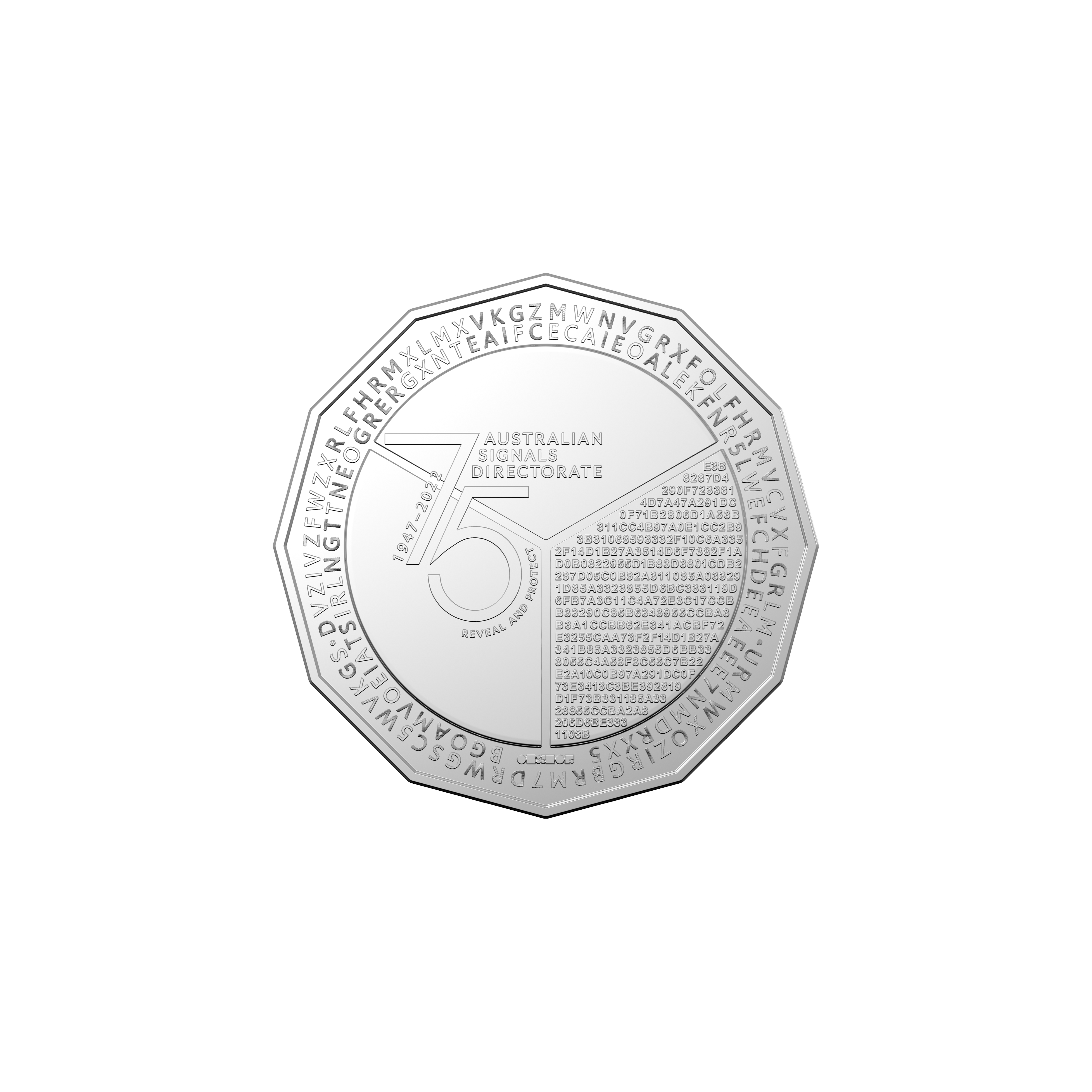 I know very little about cryptography, and I confess that I'm getting nowhere, but those dots underneath the characters on the heads side of the coin appear to be a 4-bit binary code. I suspect that the hexadecimal digits on the obverse side might be a crypto key which unlocks the two rows of cipher text. Perhaps it's some kind of one-time pad cipher? These were popular during wartime and the cold war.