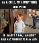 Yep, we were so poor my mum used to cut the pockets out of my trousers, so I had something to play with.