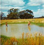 1967 - Trip Ballarat Vic. to Condamine Qld. and return.......2 people, car and 2 Sleeping Bags - not "overloaded"! (here beside the lake in Parkes NSW)