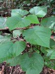 First pic shows one of our two known plants with 'fruit'. Because leaves often vary in size & can be easily confused with any number of other similar looking plants, knowing what the fruit looks like is helpful - although not foolproof as they don't always have fruit on them, It is also very common for them to look quite 'moth eaten by insects like this one.