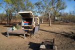 Typical NT National Park. All facilities shown, with exception of potable water available from ranger station a couple of kms away. Toilet, table/sleeping platform, firepit with bbq plate. All we need $6.50 per person per night in 2019. No booking required. (Butterfly Falls campground, Limmen NP)