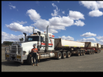 Ma and Pa Kettle were meandering along in their pretty, new, Triton towing a van that was clearly too big for that car, at 60km/hr in an 80km/hr area, followed by two other motorists, then my 125 ton Roadtrain. All of a sudden, with no prior indication, Pa Kettle decided he'd like to turn right into a sideroad, so it's "full brakes" time .