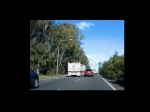 Certainly was a close call for the car driver, Bob. For whatever reason, the driver of the truck appears to turn sharply to the right just as the prime mover gets back into the left lane, setting up a chain reaction which ultimately upended the Dog trailer.Perhaps he was on the wrong side of the road after being "called through" by the driver with video on his vehicle? Truckies, present or retired, will know what Im talking about here, as this is common practice at night in the outback. In case any members are not familiar with statistics for car v truck accidents, now might be an opportune time to iterate that over 80% (83%?) of FATAL accidents involving both cars and trucks are caused by the car driver. Not bad figures, considering that many trucks travel 1000km/day, while many motorists wouldn"t drive that far in two weeks. Enough for now. Cheers.