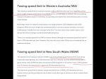 In the link above I was surprised at a statement in the Comments section that the WA max towing speed was 80, so I checked a WA Gov web site. It quoted 100km/hr & I posted to that effect, just to set the record straight.