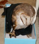 You now need some live mice to feed him. If no mice then fresh meat with cat or dog fur mixed in it. The boss was a wild life carer so we bred mice just for the owls.