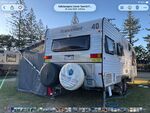 This quality rearclub lounge with seperate bedroom / toilet and shower. Built on 4500kg Simplicity independent suspension and a 150mm riser ensures that it is a stable van. Having Tucson sway control ( providing a 10% discount on insurance) . The van has all usual luxuries such as 2 tv ( one in lounge and one in bedroom) convection microwave set below grill hotplate, 3 way fridge with temperature controlled fan to cool the exterior. numerous speciality items that have been added to this van such as electric Heiki hatch in lounge, diesel heater, rear aluminium narrow storage for essentials such as awning anti flap kit etc. These are supplemented by 2 additional storage boxes mounted on chassis for things like level ramps,
